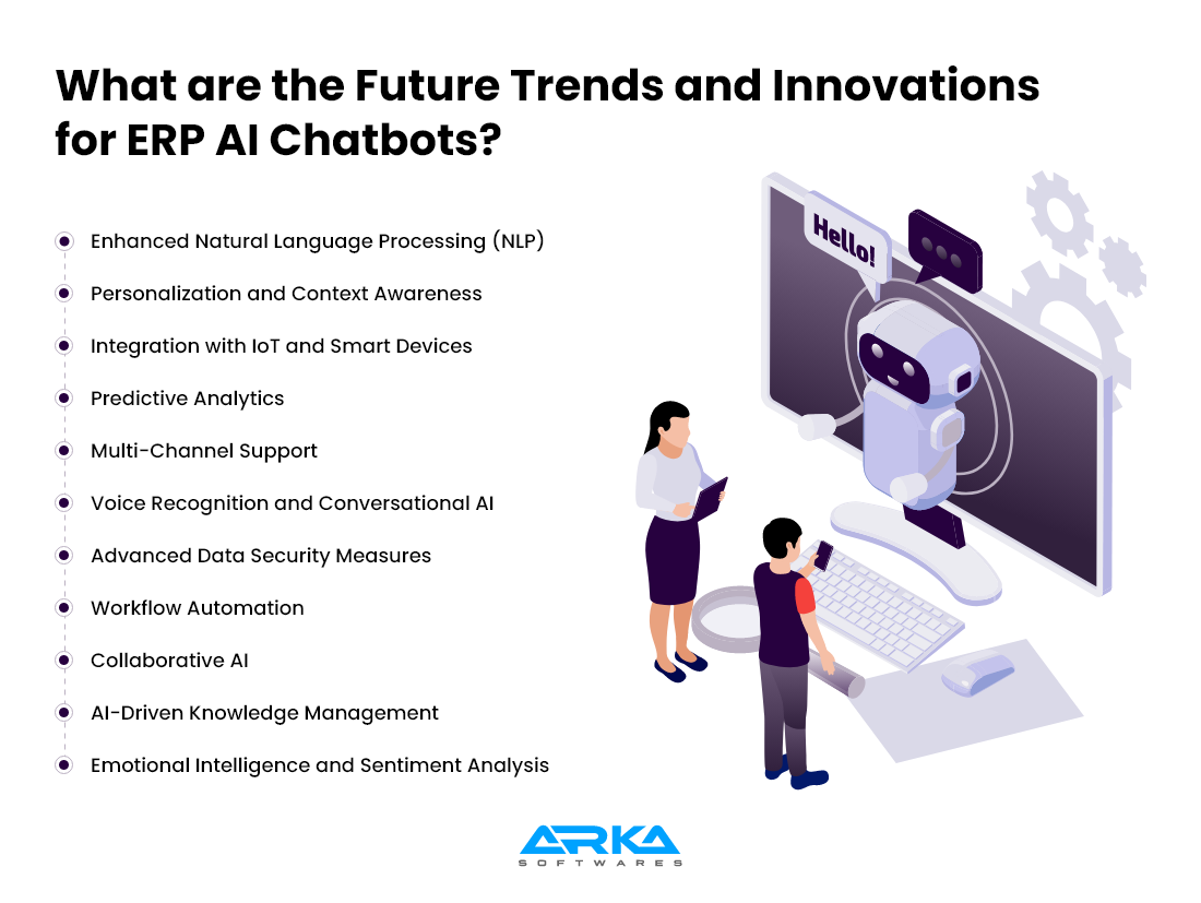 The future of ERP AI chatbots is poised for significant innovation and transformation. Here are some key trends and developments to watch: