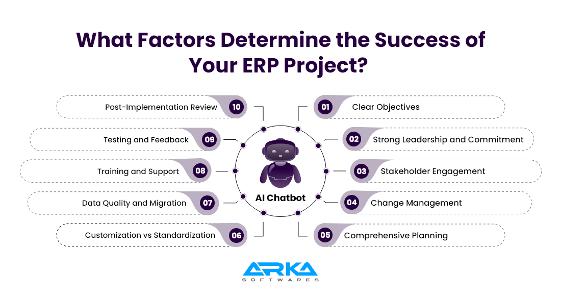 The success of an ERP (Enterprise Resource Planning) project depends on several key factors: